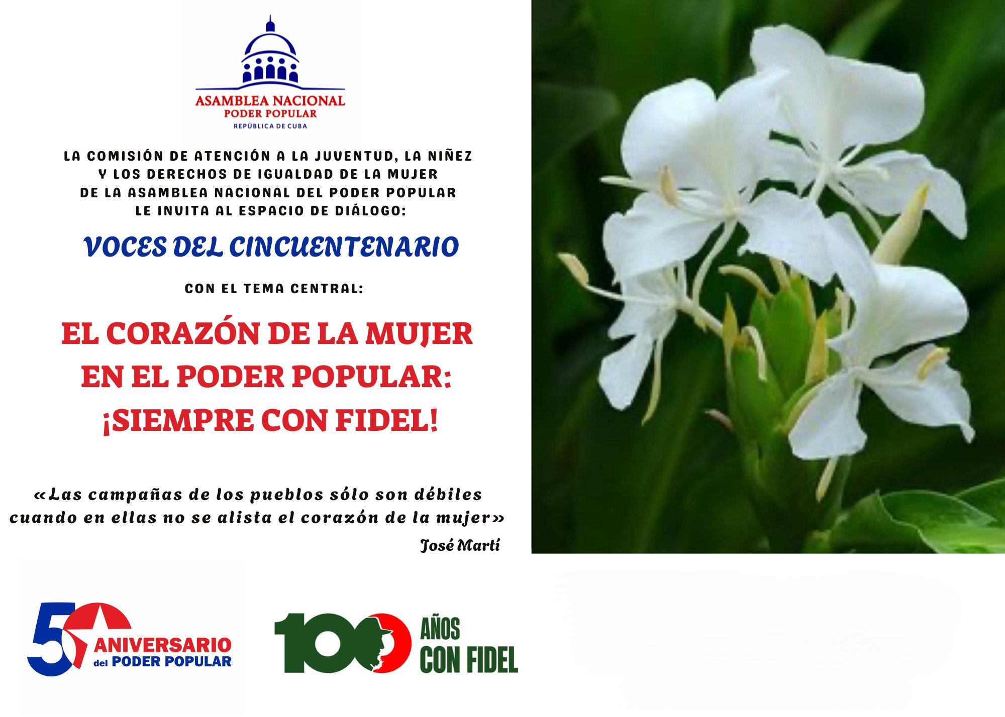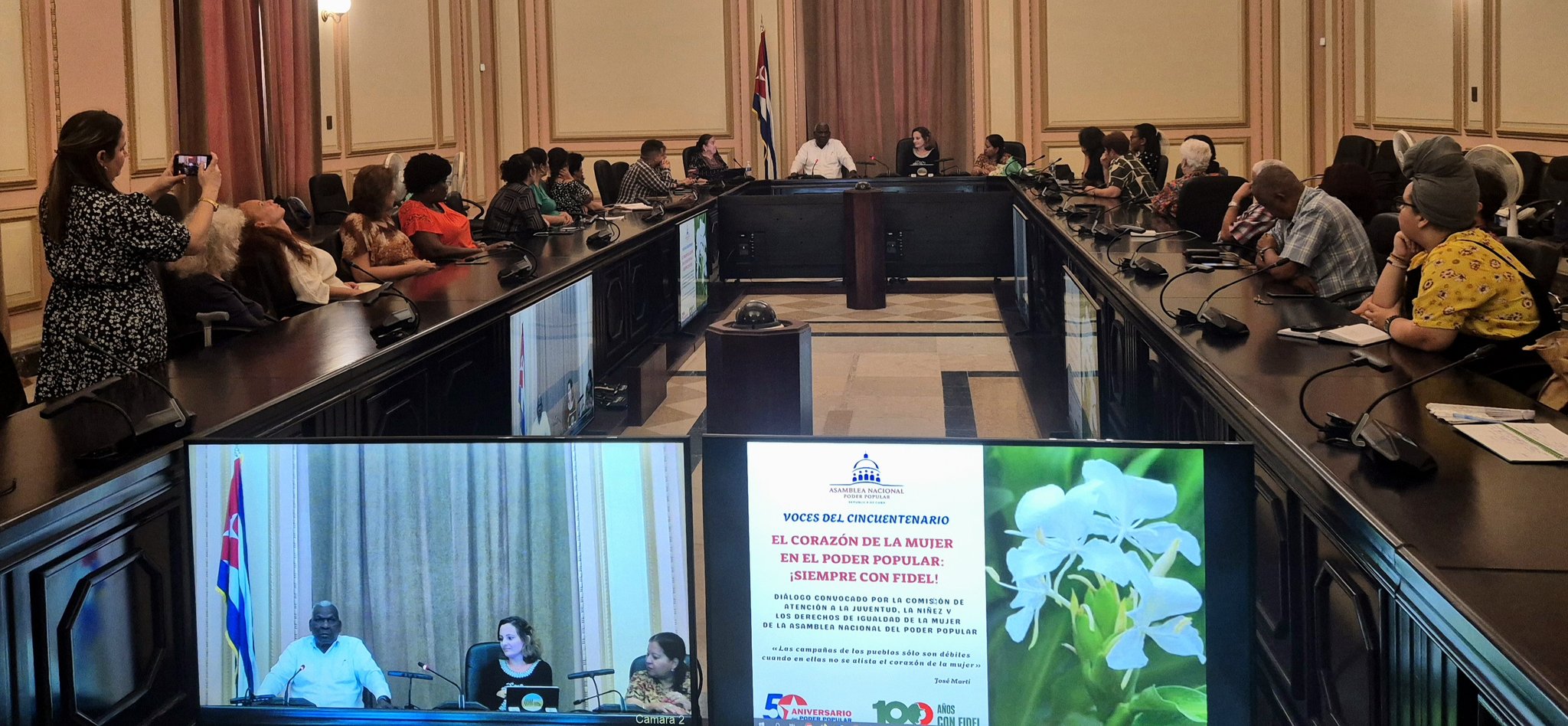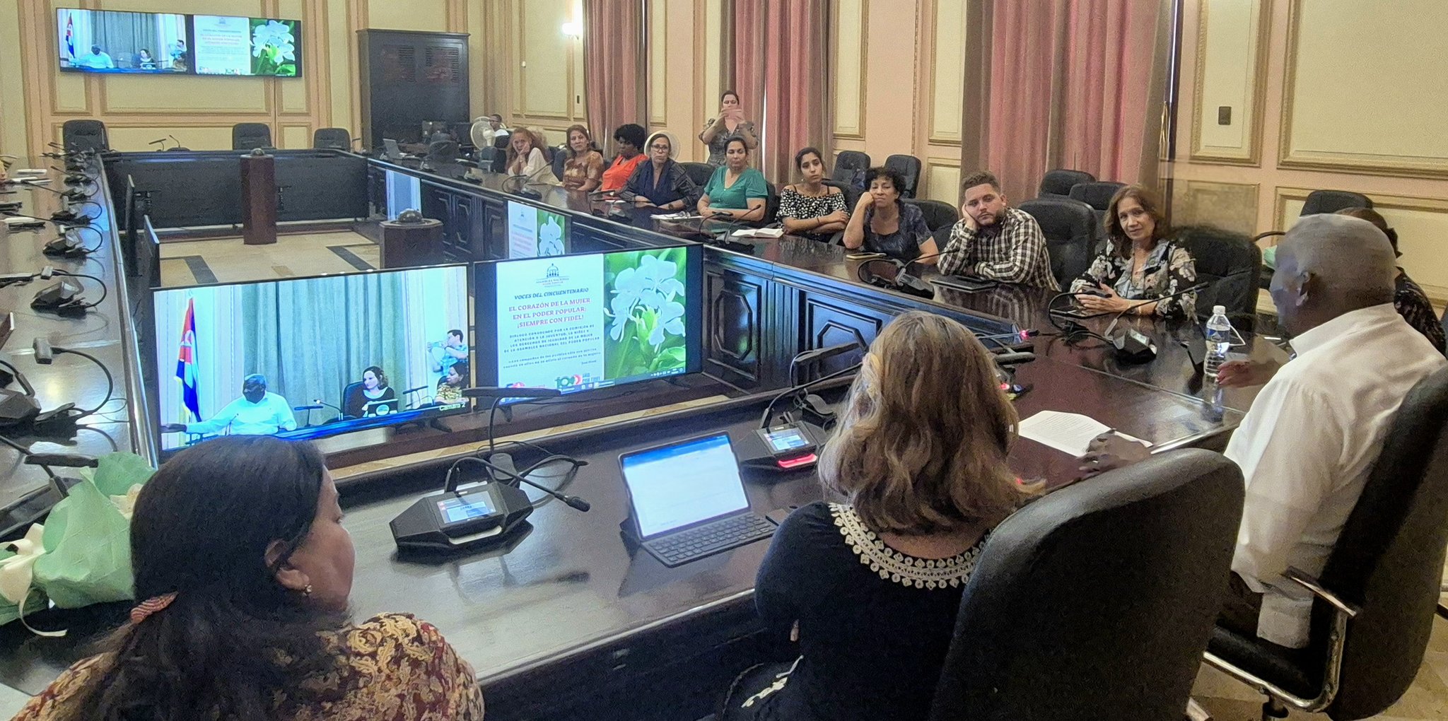 El encuentro –convocado por la Comisión de Atención a la Juventud, la Niñez y los Derechos de Igualdad de la Mujer del Parlamento cubano– se realizó como parte de las acciones por el medio siglo de la creación del sistema del Poder Popular en Cuba; así como del centenario del natalicio del Comandante en Jefe Fidel Castro Ruz. En el diálogo se destacó el papel de las féminas en la vida política y social del país.