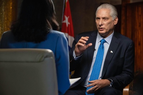 Miguel M. Díaz-Canel.- A ver, el pueblo cubano está sufriendo. Y ese sufrimiento, como te decía, lo podemos ver en dos ámbitos: en el ámbito de lo nacional y en el ámbito de lo familiar, porque todo está en la cotidianidad.