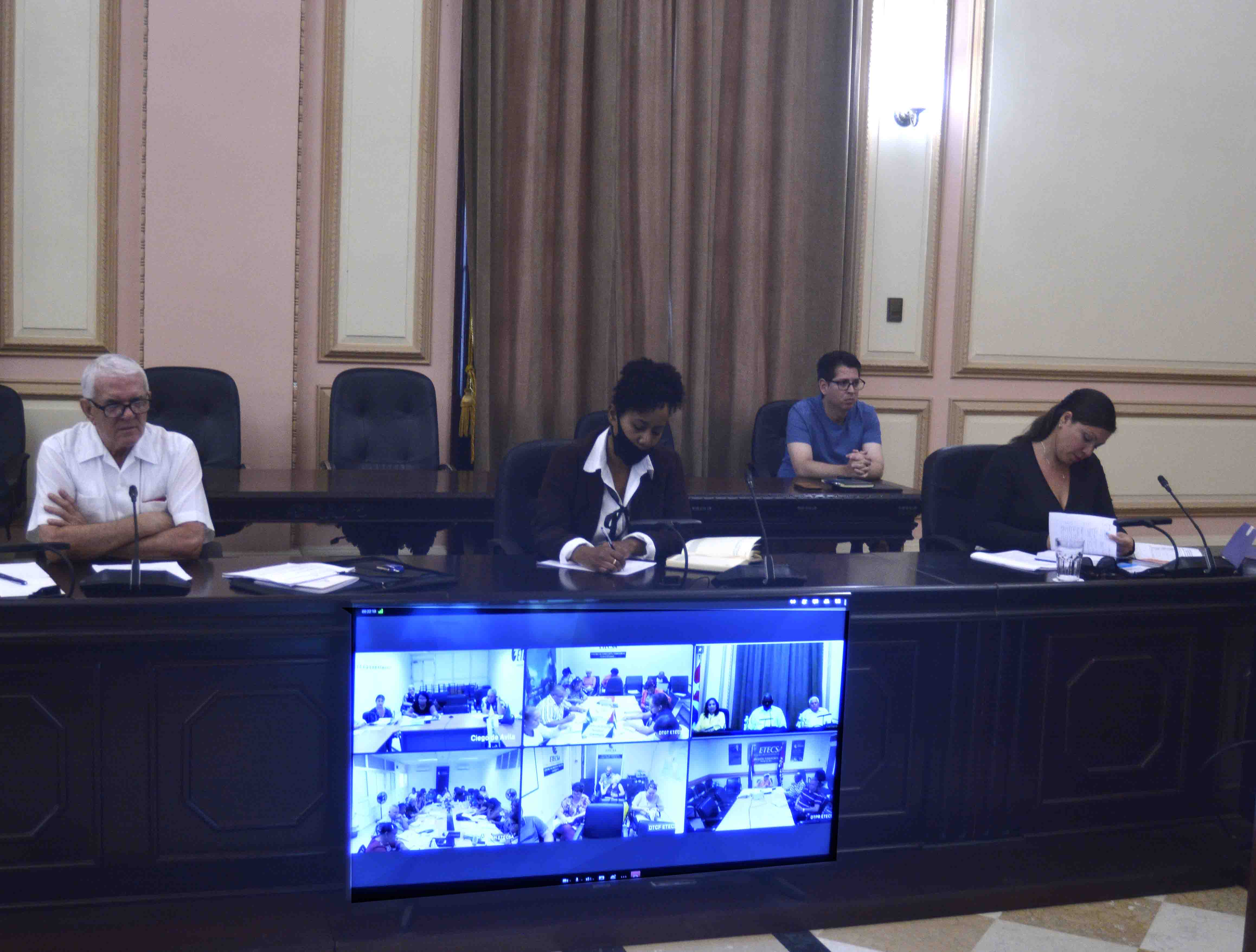 En la jornada, Esteban Lazo encabezó el encuentro de trabajo que mensualmente mantiene la Asamblea Nacional del Poder Popular con los presidentes de las asambleas municipales del Poder Popular de todo el país, mediante videoconferencia.