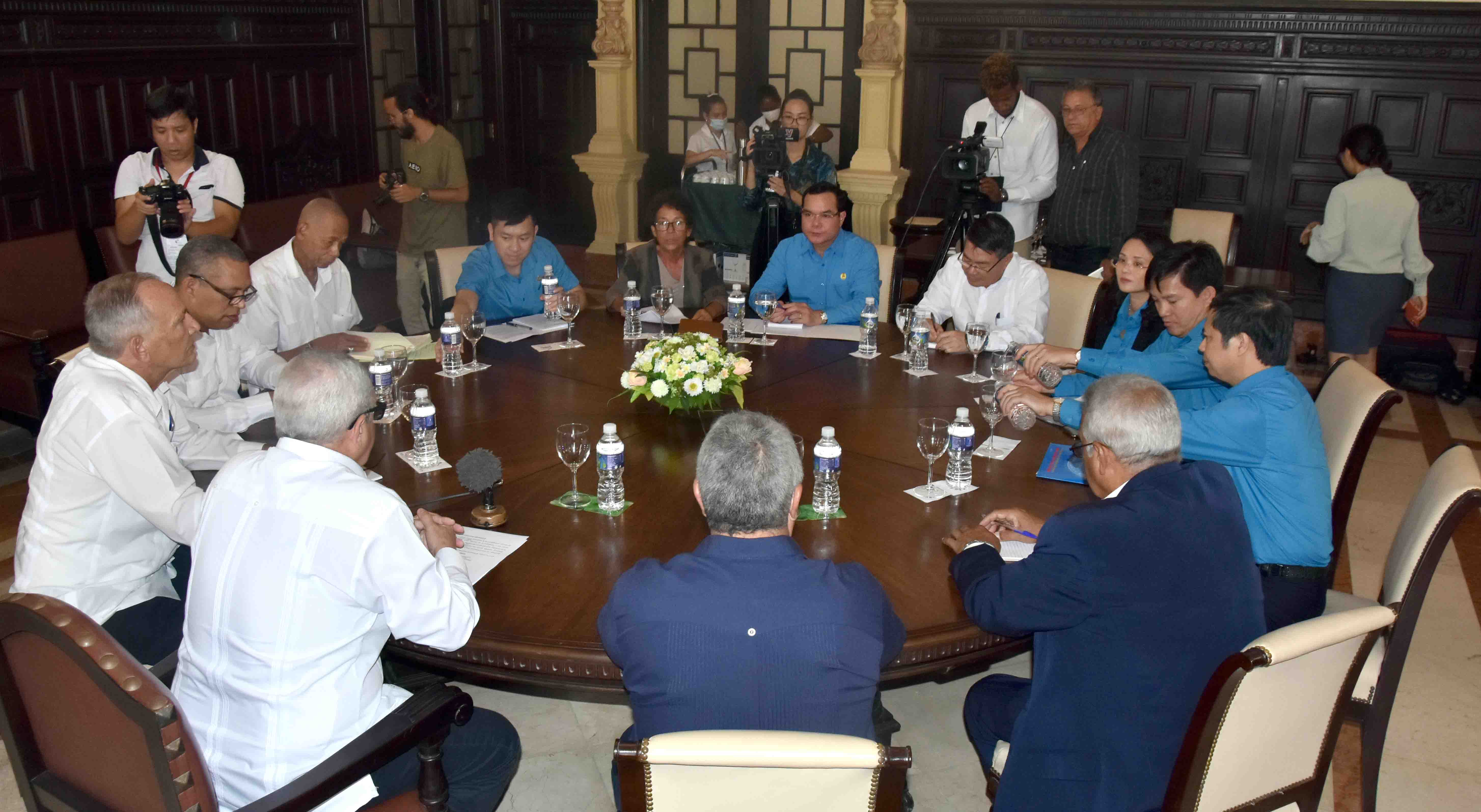 «En mi corazón, como en el de nuestro pueblo, ocupa un lugar especial el amor y el cariño profundo por Vietnam», expresó el miembro del Buró Político del Comité Central del Partido Esteban Lazo Hernández, presidente de la Asamblea Nacional del Poder Popular y del Consejo de Estado de la República de Cuba, en un fraternal intercambio celebrado este miércoles en el Capitolio Nacional con el miembro del Comité Central del Partido y presidente de la Confederación General del Trabajo de Vietnam, Nguyen Dinh Khang.