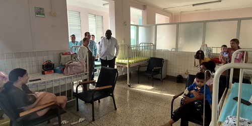 En su condición de diputado electo por este municipio de la capital; Lazo Hernández comenzó su recorrido por áreas del Hospital Pediátrico Docente «Dr. Ángel Arturo Aballí», donde en fructífero diálogo con pacientes y sus familiares, personal sanitario y demás trabajadores, constató la calidad de la atención y los servicios, los principales resultados alcanzados en la etapa, la estrategia acometida que ha permitido garantizar la limpieza e higienización en cada espacio del centro, así como la inversión constructiva acometida en la sala de terapia de esta institución, entre otros aspectos.